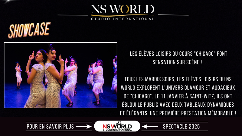 Nos élèves ont l'opportunité de se produire lors de spectacles de fin d'année à thème, organisés dans des conditions professionnelles. Ces représentations permettent à chacun de vivre l'expérience unique de la scène, tout en célébrant le travail accompli tout au long de l'année.