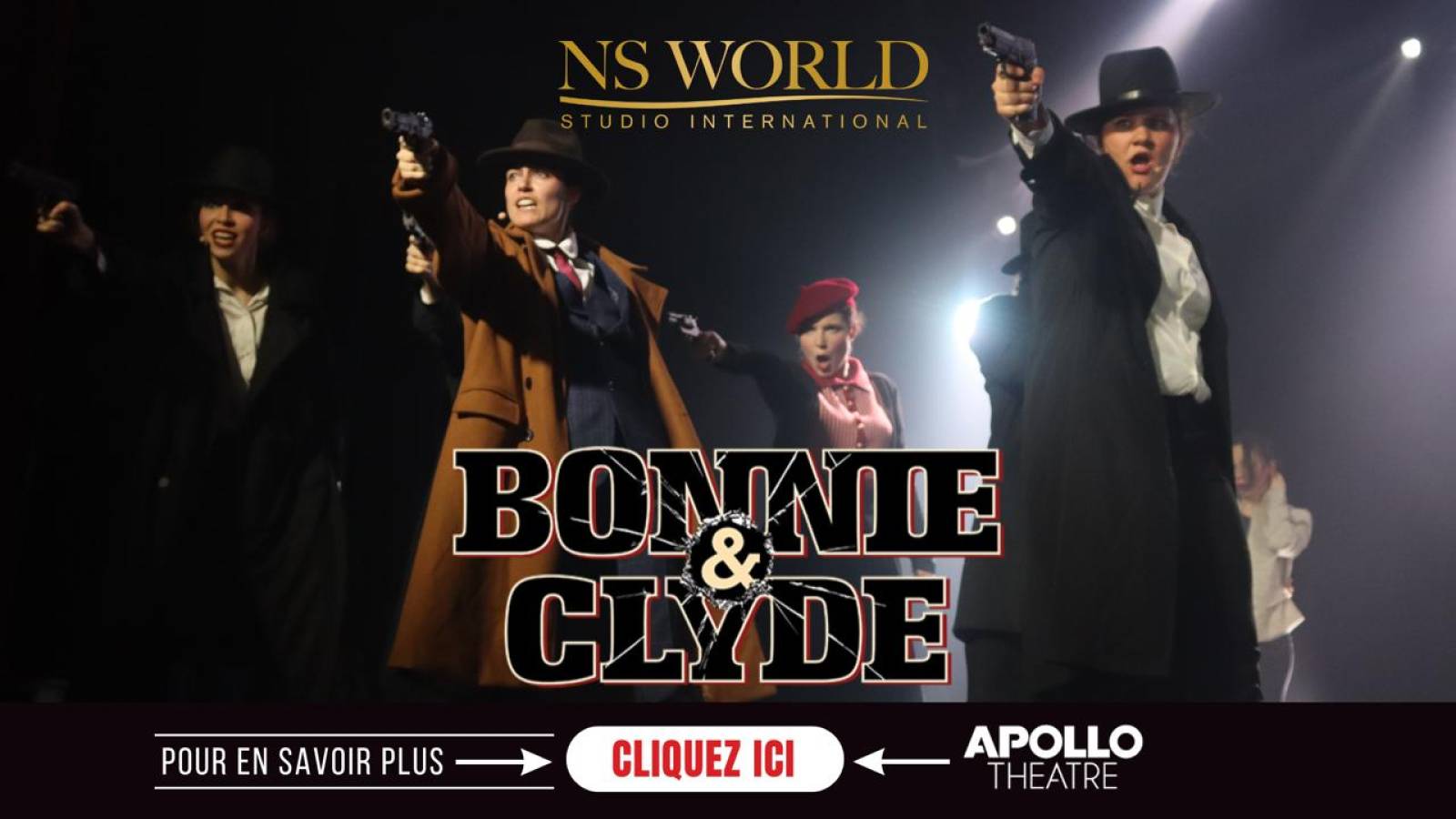 Cette saison, les élèves ont participé à une adaptation libre et en français du mythe de Bonnie and Clyde, sous forme de jukebox musical, mêlant répertoire populaire, séquences chorégraphiées et scènes intenses.