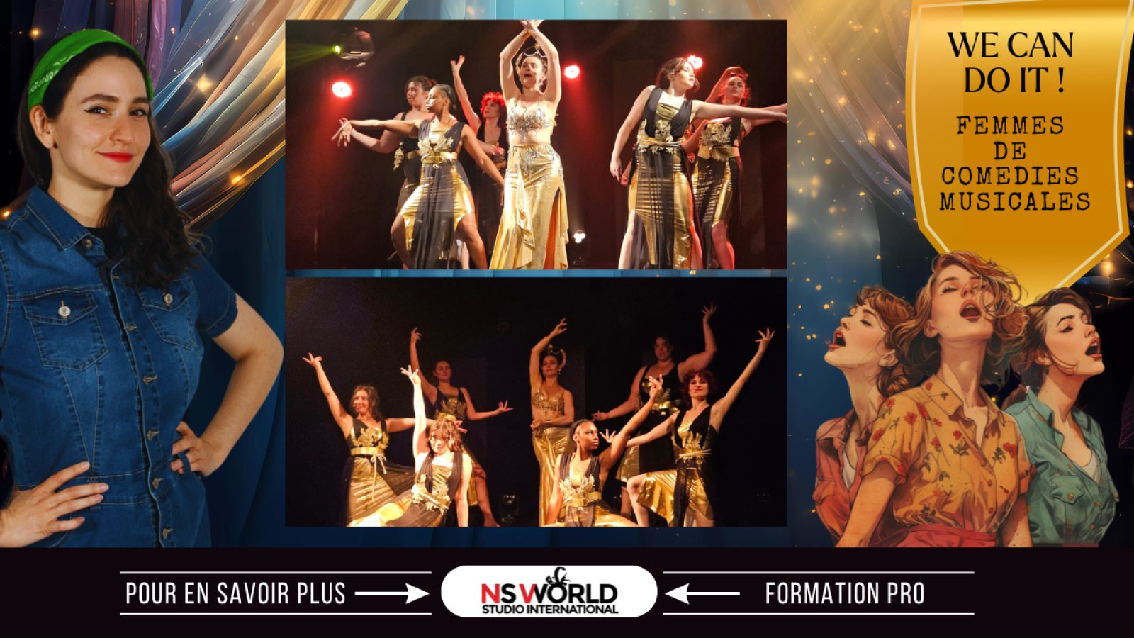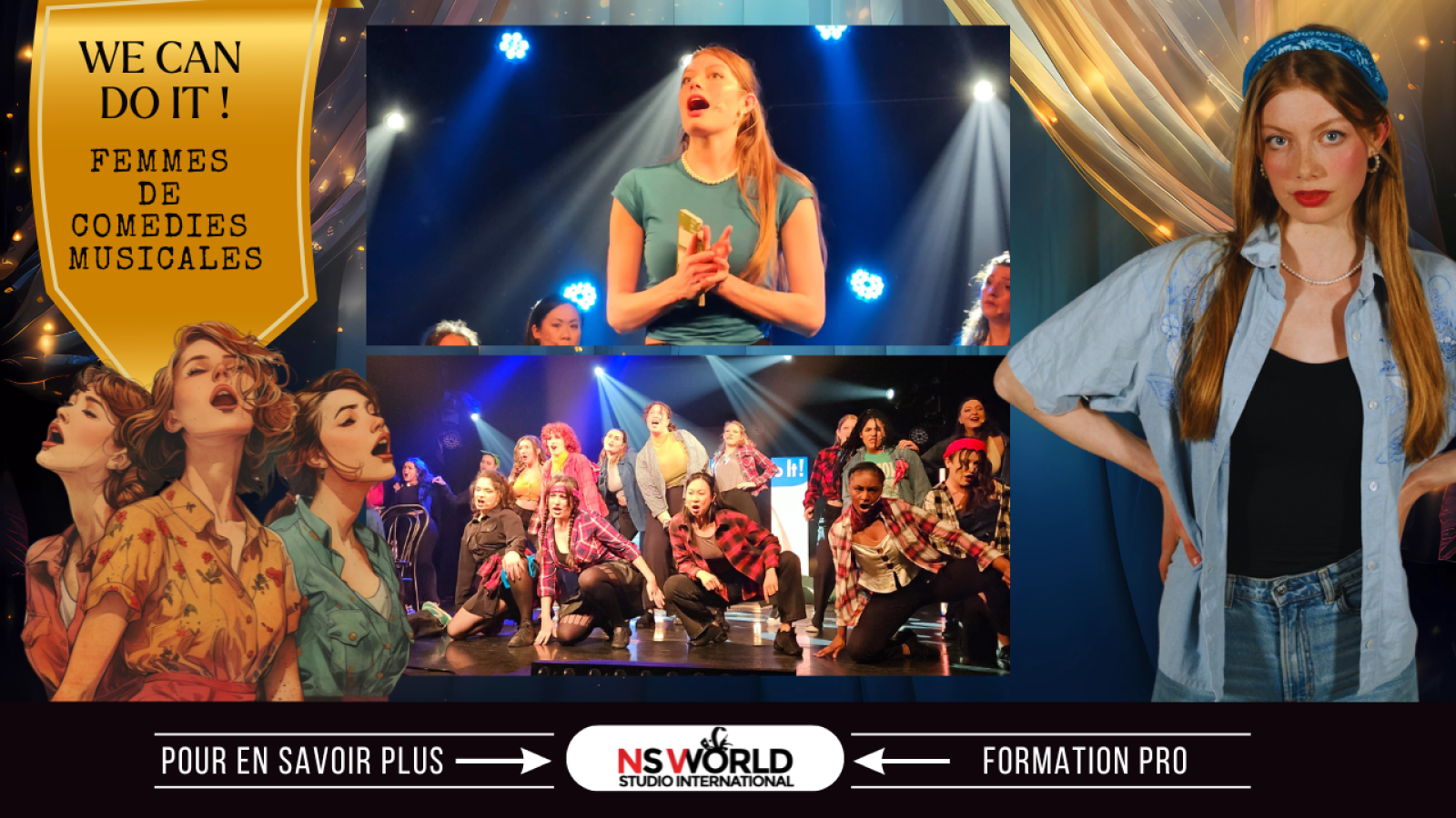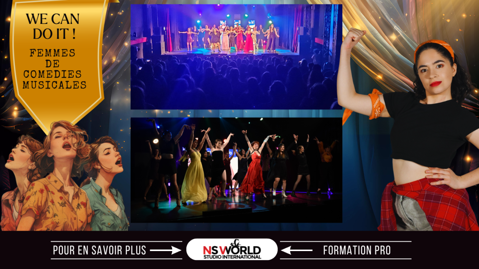 Notre formation professionnelle en comédie musicale offre aux élèves des conditions dignes des plus grands spectacles parisiens. Le spectacle WE CAN DO IT! sera présenté dans un théâtre parisien renommé, équipé des meilleures installations techniques en son, lumière, et micros. Les élèves se produiront avec des accessoires, des costumes et des décors de haute qualité, leur permettant de vivre une véritable expérience de scène professionnelle.