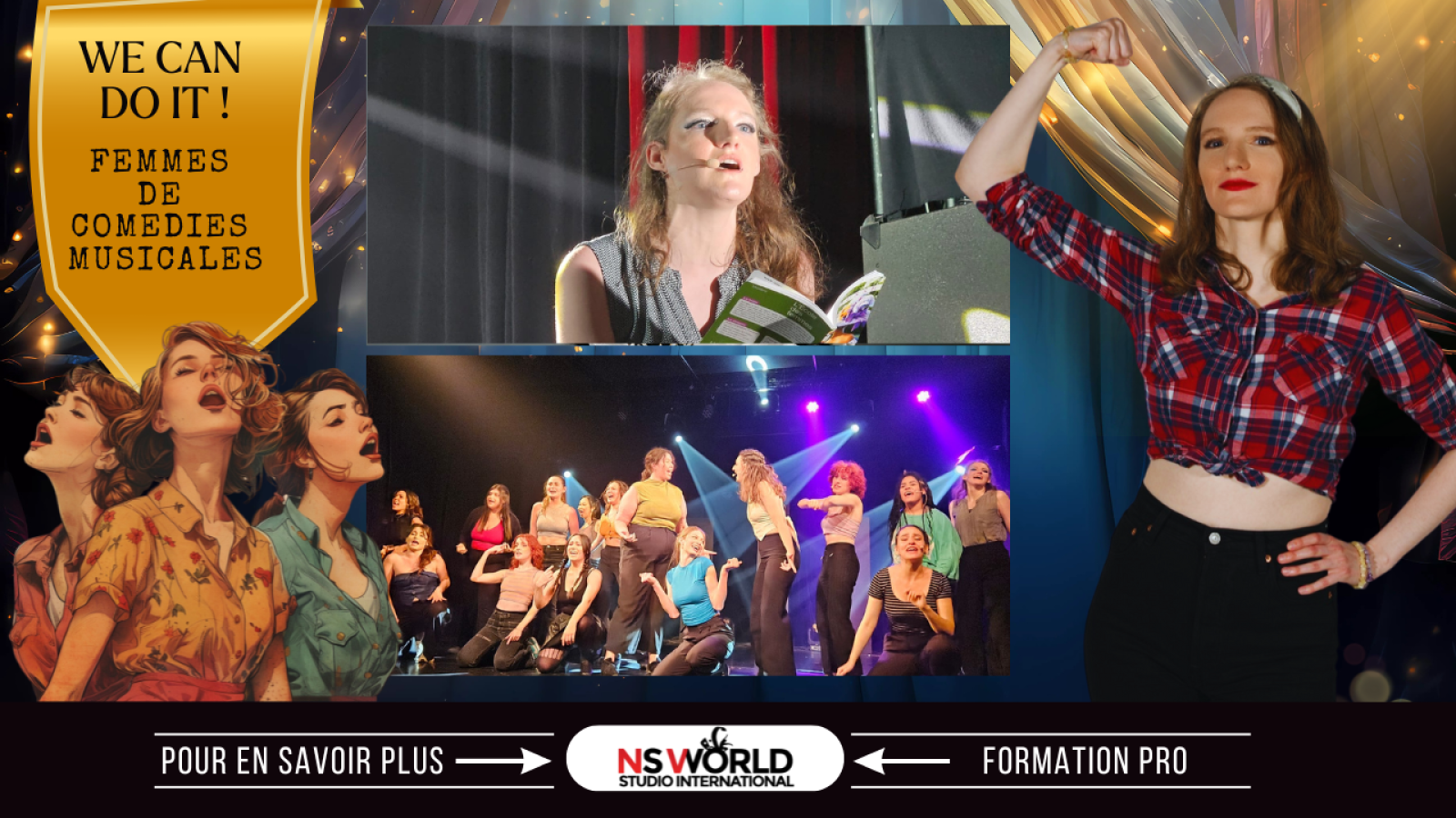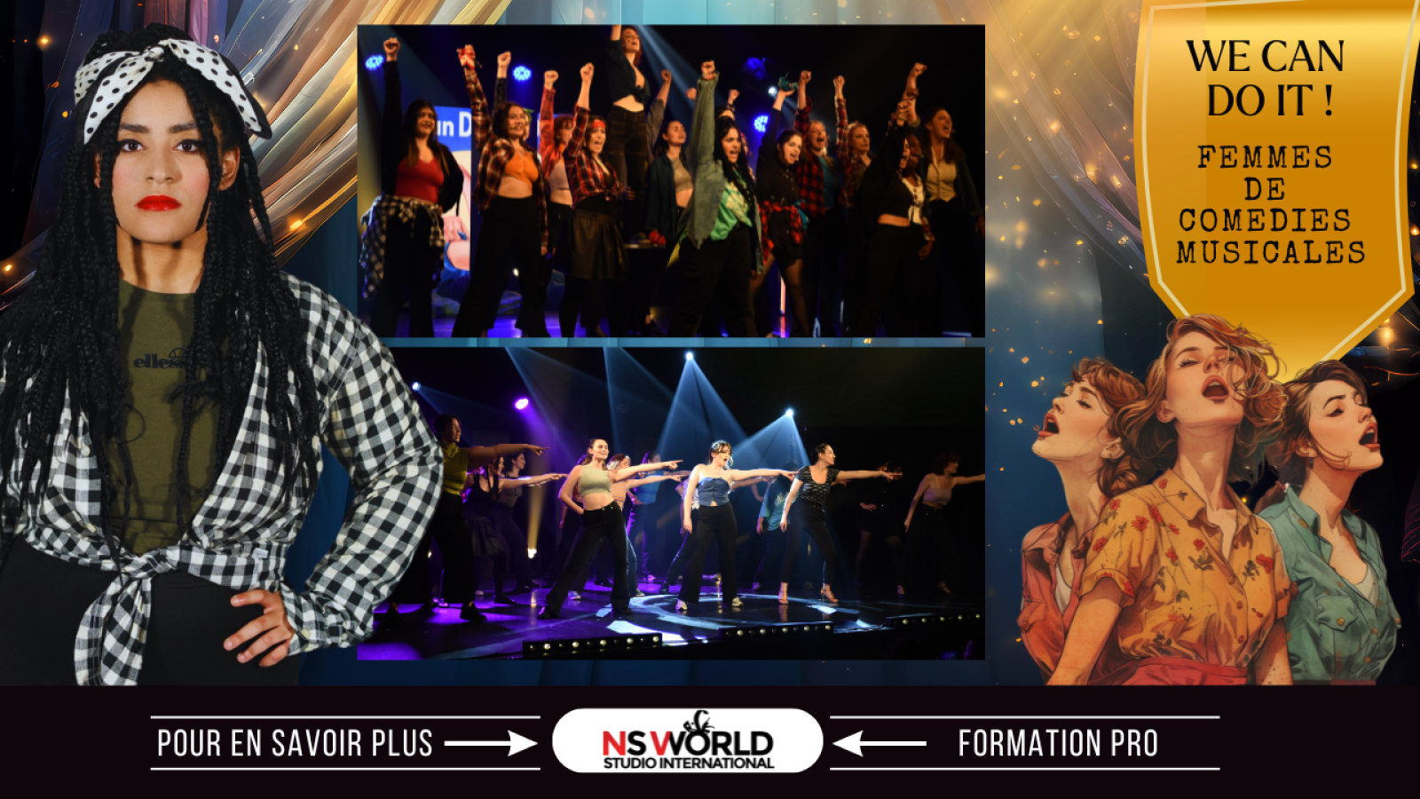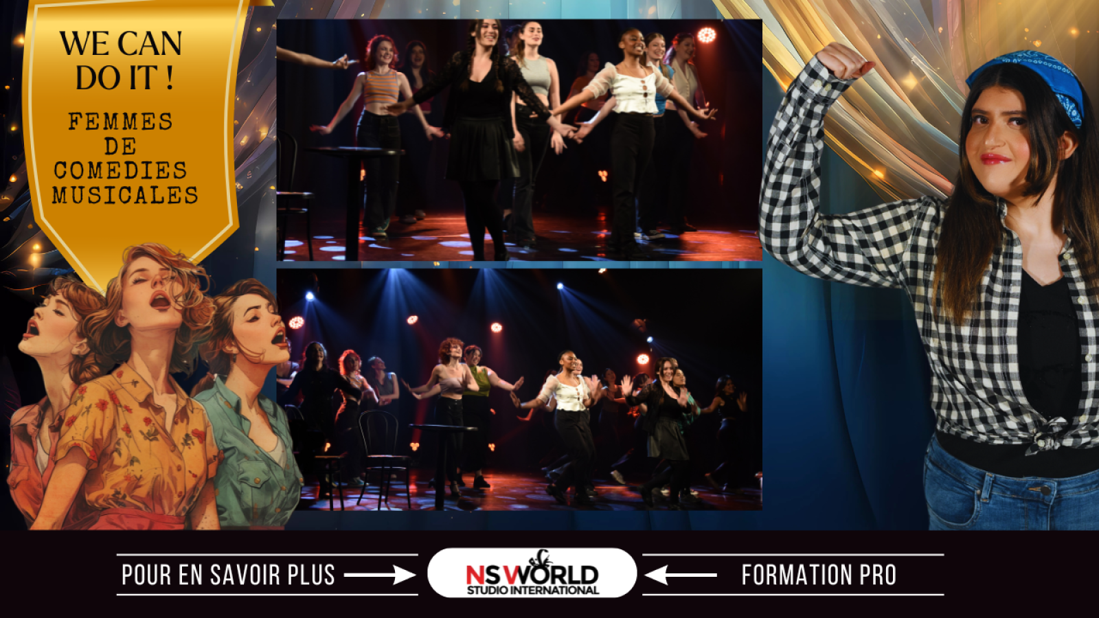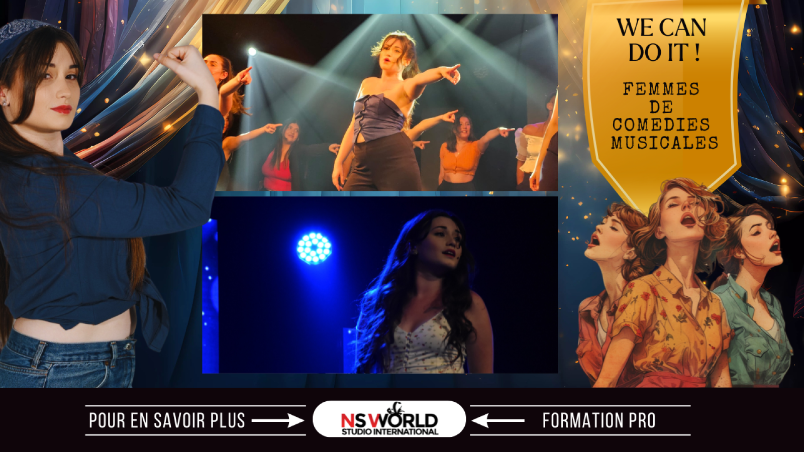 Notre formation professionnelle en comédie musicale offre aux élèves des conditions dignes des plus grands spectacles parisiens. Le spectacle WE CAN DO IT! sera présenté dans un théâtre parisien renommé, équipé des meilleures installations techniques en son, lumière, et micros. Les élèves se produiront avec des accessoires, des costumes et des décors de haute qualité, leur permettant de vivre une véritable expérience de scène professionnelle.