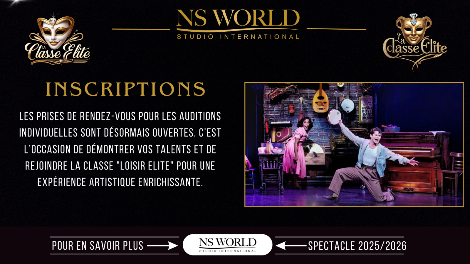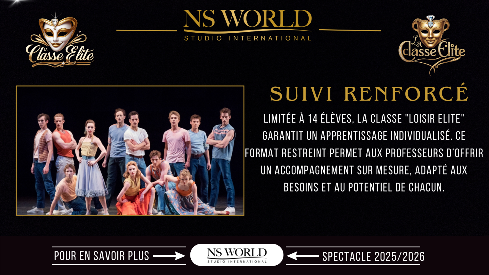 Rejoindre la classe élite, c’est faire le choix d’un engagement artistique fort, dans un cadre bienveillant mais exigeant, où la passion rencontre la discipline, et où chaque élève est invité à révéler son potentiel.