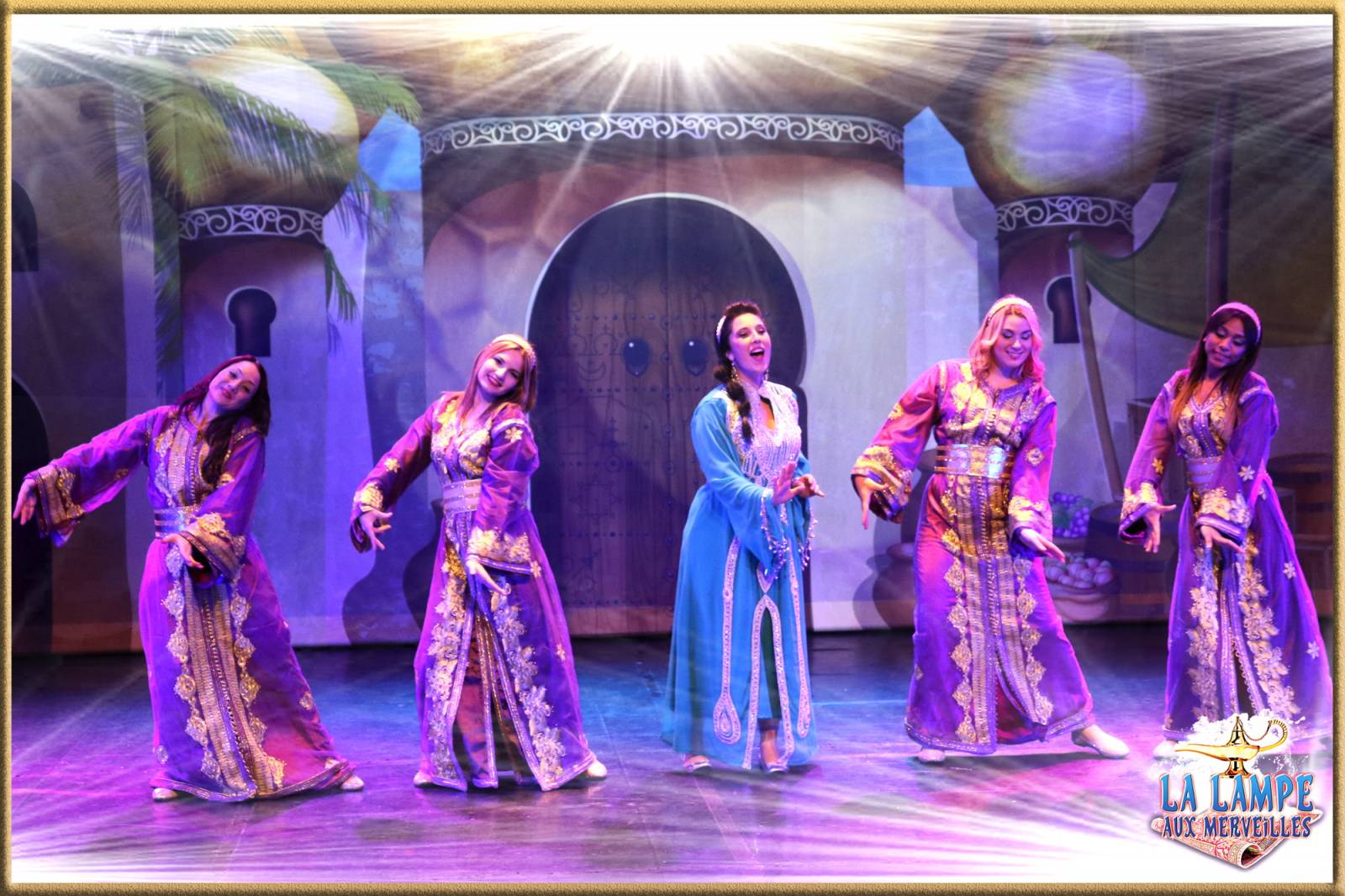 D'après une histoire tirée des contes des 1001 nuits, ce spectacle haut en couleurs rassemble 14 artistes chanteurs, danseurs, comédiens.