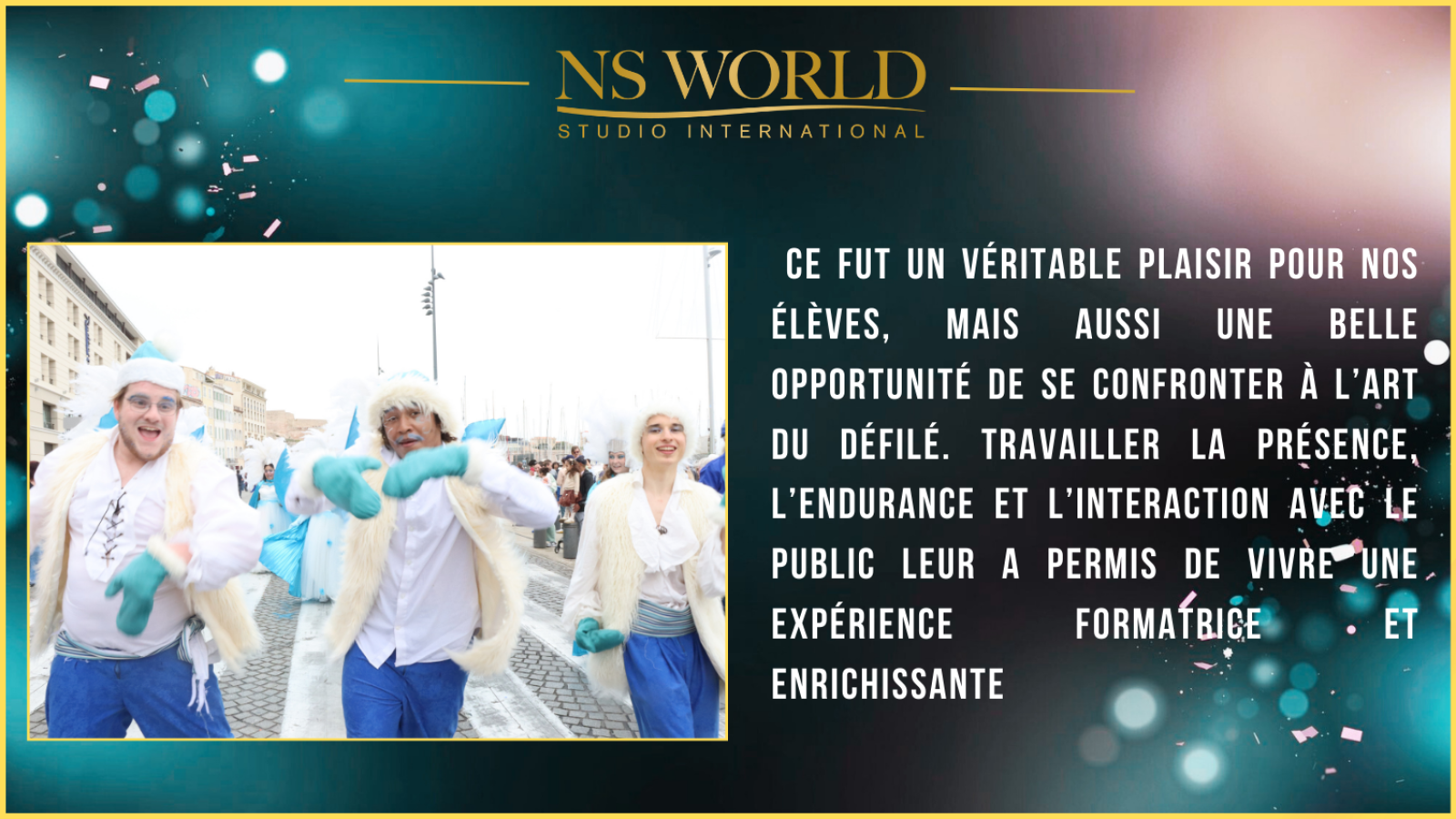 Bravo à tous nos élèves pour leur implication, leur enthousiasme et leur professionnalisme. Cette parade au Carnaval de Marseille restera un moment fort dans leur parcours artistique et humain.