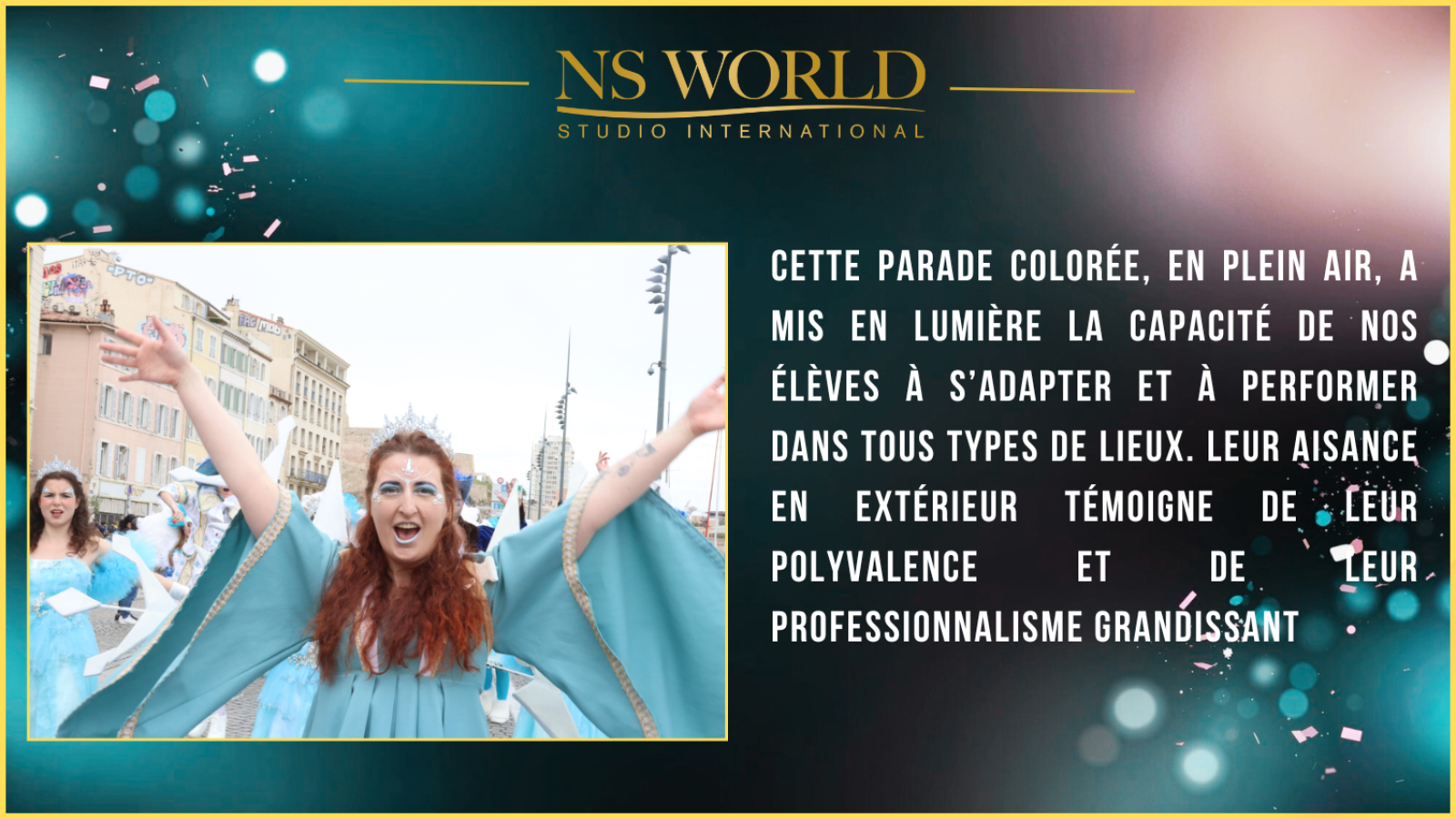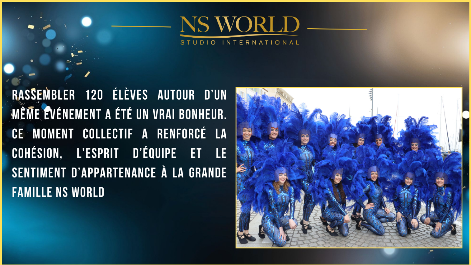 Rassembler plus de 120 élèves sur un même projet est une véritable prouesse. Leur passion commune pour la scène et leur complicité ont fait de cette parade une démonstration éclatante de l'esprit NS WORLD.