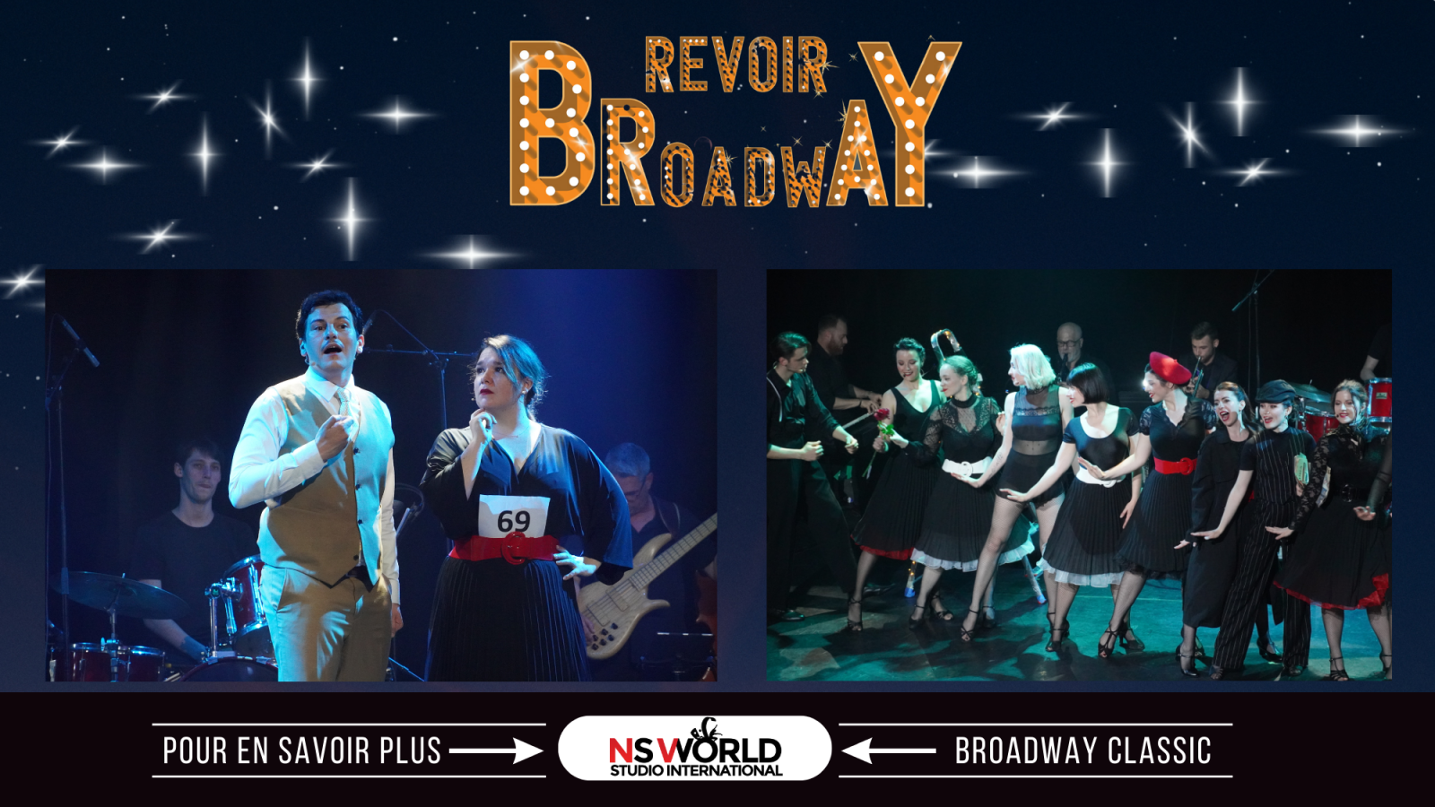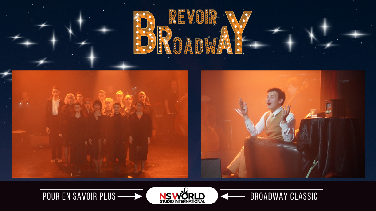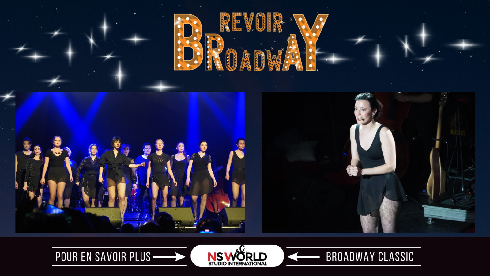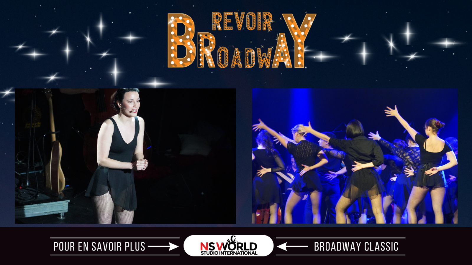 "Revoir Broadway", Créé, chorégraphié et mis en scène par des professionnels chevronnés comme Edouard Thiebaut et Clement Cabrel; ce spectacle met en lumière le talent et le dévouement de nos étudiants.